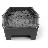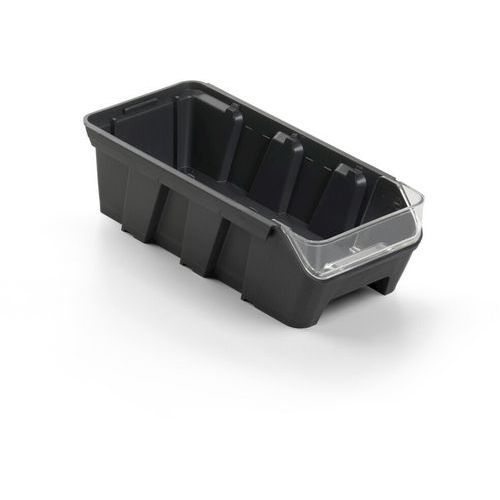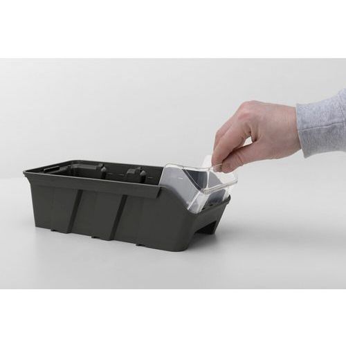 Utilizzato in combinazione con il coperchio, crea una chiusura completa che previene l'accumulo di polvere e sporco e la fuoriuscita di materiale quando si sposta la scatola per scaffalature.