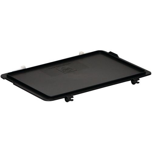 Coperchio impilabile a norma europea in materiale conduttore disponibile in diverse dimensioni in nero. Alcuni coperchi sono dotati di due cerniere montate su un lato grande (3-215Z-1-11 EL,3-214Z-1-11 EL, 3-213Z-1-11 EL) Su questi stessi modelli, è inoltre possibile aggiungere delle chiusure a molla.