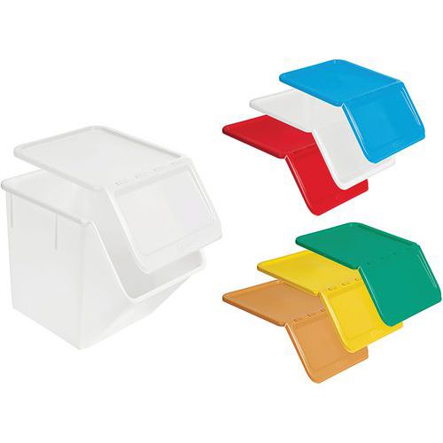 Grande resistenza grazie all'utilizzo di cerniere integrate senza parti aggiuntive. Il coperchio tenuto solo in posizione aperta per facilitare l'utilizzo del contenitore per alimenti. Grande spazio con contrassegni per indicare la quantità del contenuto. Possibilità di scelta tra diversi colori e possibilità anche di scelta di una versione trasparente. Realizzato in Francia Culinario HACCP