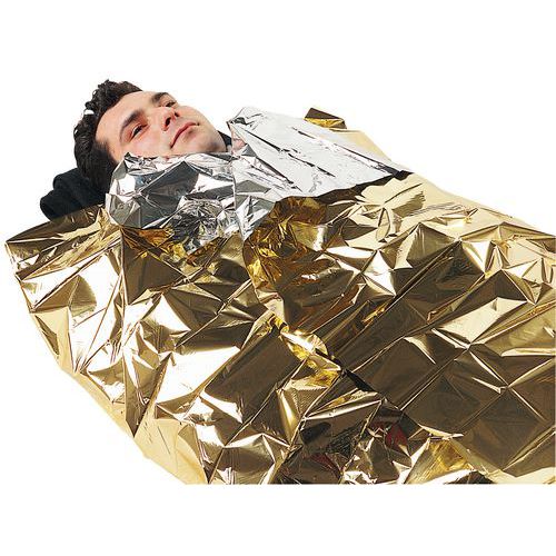 - Realizzate in poliestere metallizzato, indispensabili per il primo soccorso di feriti, proteggono dal caldo (lato dorato - argentato all'esterno), dal freddo e dagli agenti atmosferici (lato argentato - dorato all'esterno). Questa copertura è adatta anche per il campeggio, i bivacchi, l'alpinismo, lo sci, l'ambiente nautico, ecc...