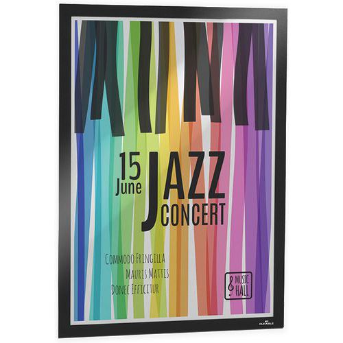 Soluzione di affissione adesiva elegante e funzionale per mettere in risalto i vostri documenti e cambiarli facilmente. Si fissa in interni su tutte le superfici lisce e rigide, su superfici in vetro direttamente esposte al sole e resiste a una temperatura di 70°. Cornice di affissione Duraframe® Poster facile da utilizzare, è sufficiente aprire la cornice sul lato per inserire il documento e aggiornarlo rapidamente grazie alle strisce magnetiche. Consente un'affissione fronte-retro su superfici in vetro. Retro autoadesivo, la cornice si attacca e stacca facilmente dalla superficie utilizzata per riposizionarla in un istante e senza lasciare tracce.