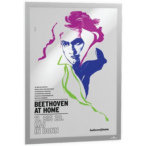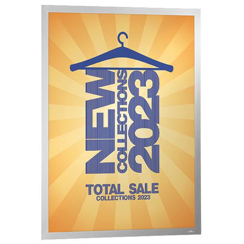 Soluzione di affissione adesiva elegante e funzionale per mettere in risalto i vostri documenti e cambiarli facilmente. Si fissa in interni su tutte le superfici lisce e rigide, su superfici in vetro direttamente esposte al sole e resiste a una temperatura di 70°. Cornice di affissione Duraframe® Poster facile da utilizzare, è sufficiente aprire la cornice sul lato per inserire il documento e aggiornarlo rapidamente grazie alle strisce magnetiche. Consente un'affissione fronte-retro su superfici in vetro. Retro autoadesivo, la cornice si attacca e stacca facilmente dalla superficie utilizzata per riposizionarla in un istante e senza lasciare tracce.