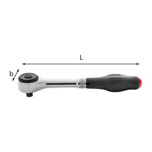 | Descrizione | Cricchetto reversibile con impugnatura rotante 1/2 AK, Lunghezza totale: 260 mm, Materiali: Acciaio |