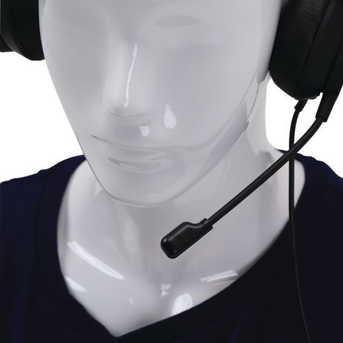 - Cuffia-microfono con filo biauricolare, ideale per il telelavoro e gli ambienti condivisi.