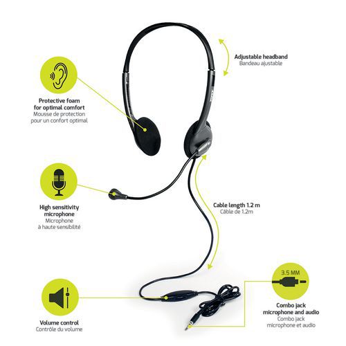 Cuffia-microfono con filo, Selezione telelavoro: si, Durata d'uso consigliata: 5 h, Connessione: Jack