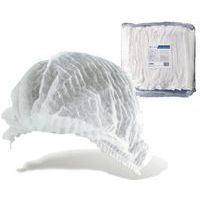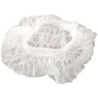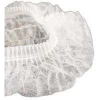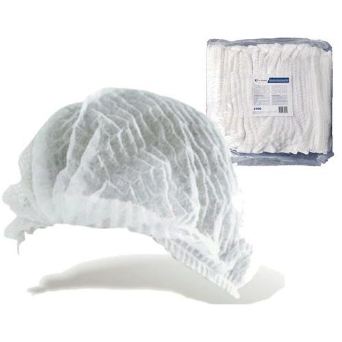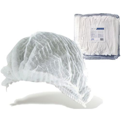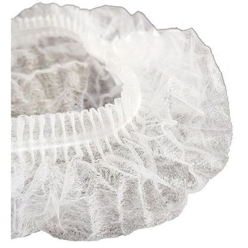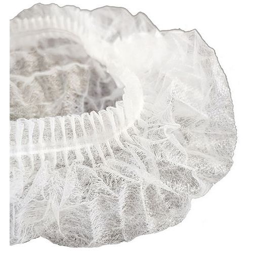 - Cuffia tonda e bianca per capelli in polipropilene non tessuto, priva di lattice.