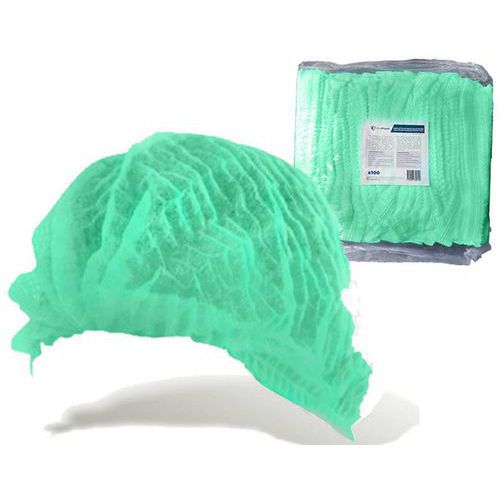 | Descrizione | Cuffia monouso verde, Tipo di vestiti: Cuffietta, cappellino, cappello da cuoco, Materiale: Polipropilene |