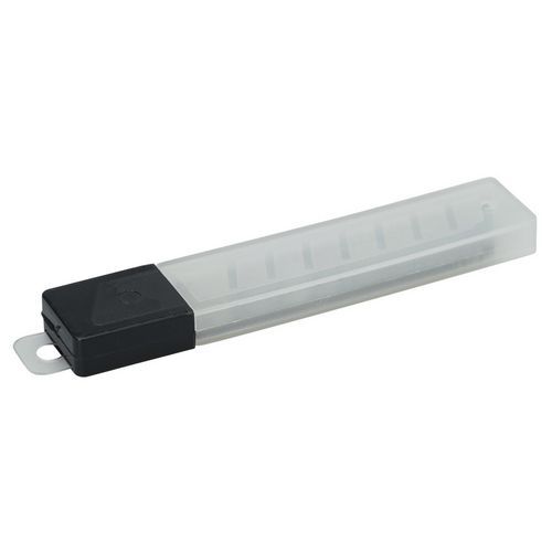 | Descrizione | Custodia per 6 lame da 18 mm, Lame materiale: Acciaio, Materiale: Acciaio |