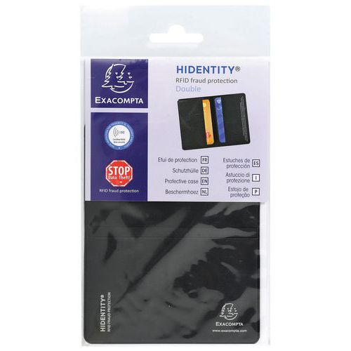 | Descrizione | Custodia protettiva RFID Hidentity Double, Colore: Nero, Materiale: PVC, Modello: Hidentity |
