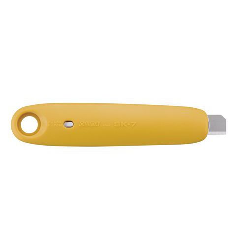 Cutter di sicurezza tascabile Olfa SK-7 lama in acciaio separabile. Lama in acciaio, separabile e reversibile. Per aprire cartoni in reception, magazzini, officine, negozi. Massima sicurezza grazie al meccanismo di ritrazione automatico. Design compatto e leggero.