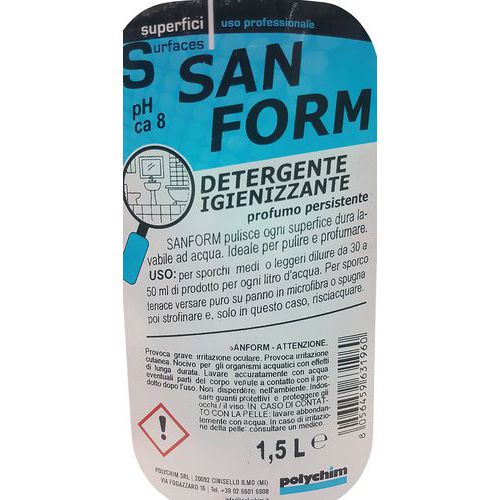 | Descrizione | Detergente igienizzante deodorante profumato SANFORM, Confezionamento: 10 x 1,5 L |