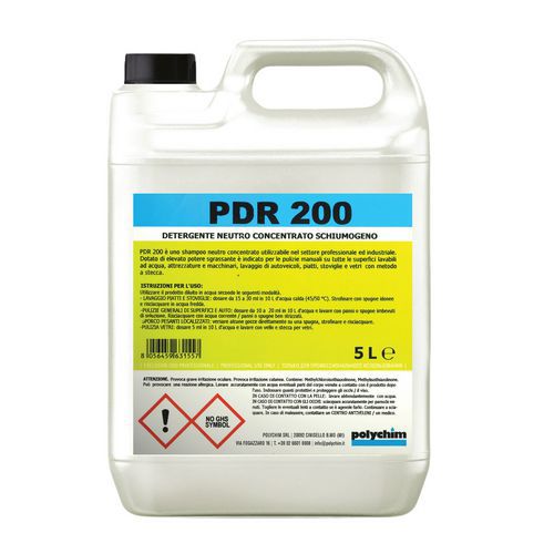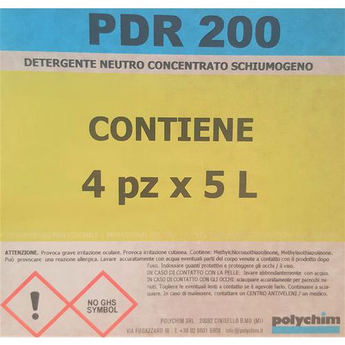 | Descrizione | Detergente neutro polivalente schiumogeno PDR 200, Confezionamento: 4 x 5 L |