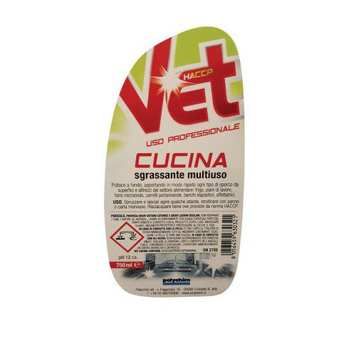 | Descrizione | Detergente sgrassante pronto all'uso VET CUCINA, Profumo: Lieve di limone |