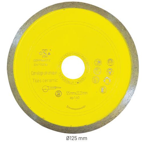 | Descrizione | Disco da taglio per piastrelle, Alesaggio Ø: 22.23 mm, Ø: 125 mm, Per materiale: Piastrelle, Uso: Taglio |