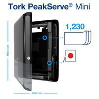 Il dispenser Tork PeakServe® Mini Continuous™ eroga salviette asciugamani Tork in carta in 3 secondi e può contenere fino a 1230 pezzi.
