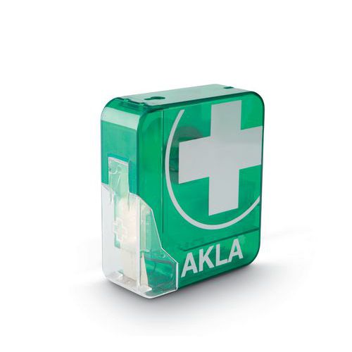 | Descrizione | Distributore di cerotti Akla, Colore: Verde, Lunghezza totale: 15 cm, Larghezza totale: 4 cm |