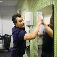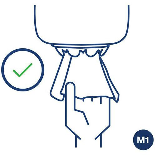 Il distributore di asciugatutto Tork M1 riduce il rischio di contaminazioni, in quanto la carta è protetta al suo interno.
