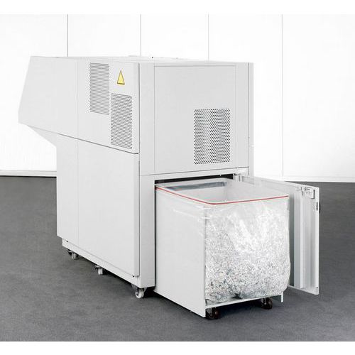 - Per distruggere grandi volumi di carta e raccoglitori completi, con meccanismo incluso.