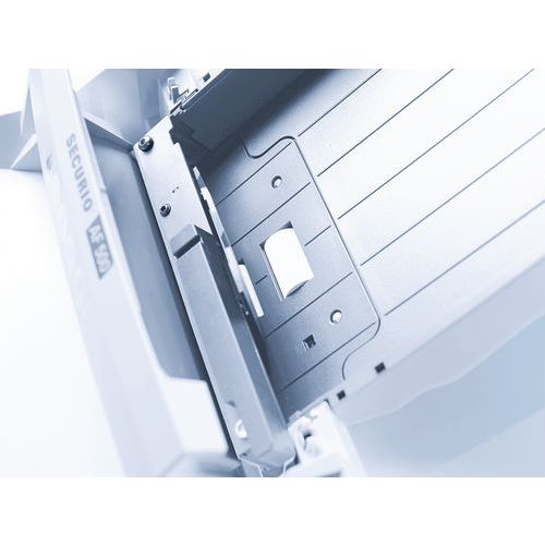 Blocco della pila di carta in coda sul distruggi-documenti con la funzione Lock-and-Go. Distruggi-documenti con taglio semplificato grazie alla funzione Autofeed. Inserimento della carta affidabile grazie alla tecnologia Nanogrip. Nuovo tipo di taglio a frammenti. Motore potente per un funzionamento ininterrotto.