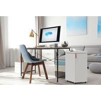 Distruggidocumenti con sistema di protezione e di sicurezza P-5. Smile luminosi che indicano la capacità massima del distruggidocumenti, evitando gli inceppamenti. Blocco di taglio in acciaio speciale, robusto e sicuro, che distrugge anche carte di credito, CD e graffette. Avvio/arresto automatico mediante fotocellula. Mobile in legno con ante, montato su ruote. Contenitore con comoda maniglia per il trasporto. Ideale per il telelavoro
