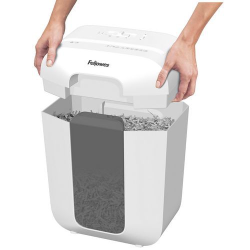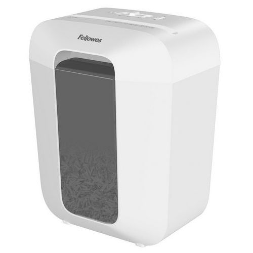 | Descrizione | Distruggidocumenti LX50 bianco a taglio incrociato P4, Capacità di passaggio 80: 9, Cestino, capacità: 17 L |