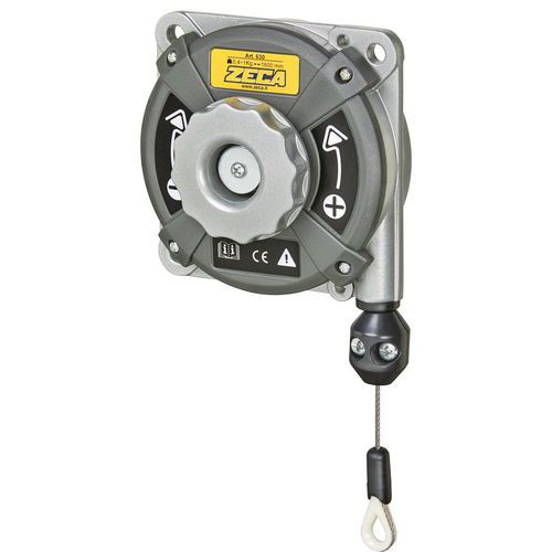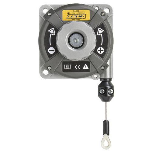 Equilibratore di carico Zeca con struttura in alluminio stampato. Regolazione continua del carico dal valore massimo al valore minimo. Lunghezza del cavo facilmente regolabile per qualsiasi esigenza. Quattro punti di sospensione e tre di ancoraggio.