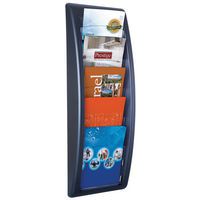 Una vera arma vincente per il vostro ufficio. Grazie agli scomparti trasparenti, questo supporto consente di presentare le brochure in modo chiaro e ordinato. Per trovare la brochure desiderata in un batter d'occhio. Struttura spessa 2 cm con finestre in polistirene cristallo. Supporto in polistirene colorato. Consegnato montato. Fissaggio con viti (non incluse).