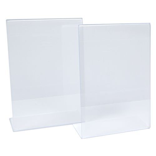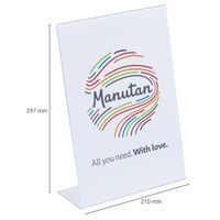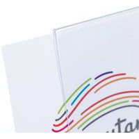 Espositore da tavolo trasparente forma a L inclinato, si posiziona agevolmente su una superficie piana. Con apertura laterale, per ridurre l'ingresso di polvere o umidità. Espositore da tavolo stabile. Facile inserimento del documento. Realizzato nell'UE