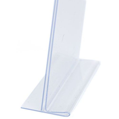 Espositore da tavolo trasparente forma T, esposizione su entrambi i lati. Raffinato, con posizionamento dritto e stabile. Documento facile da inserire tramite apertura laterale. Espositore da tavolo da appoggiare.