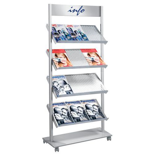 | Descrizione | Espositore mobile per brochure Rico, N. di ripiani: 4, Colore: Grigio, Tipo: 12 x A4 |