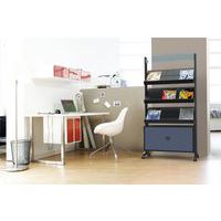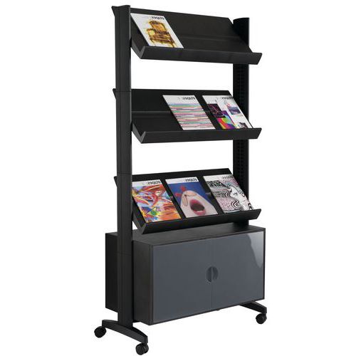 | Descrizione | Espositore mobile per dépliant con 3 ripiani e cassettiera, N. di scomparti/colonna: 3, Colore: Nero |