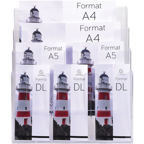 | Descrizione | Espositore multiformato, Materiale: Polistirene, Colore: Trasparente, Altezza totale: 348 mm |