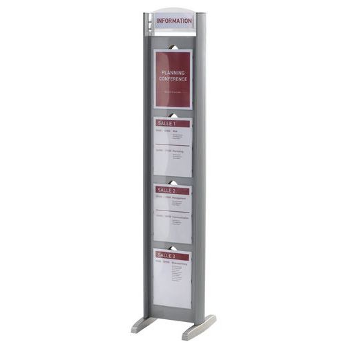 | Descrizione | Espositore porta avvisi, N. di scomparti/colonna: 8, Per formato: 210 x 297 mm (A4), Altezza: 163 cm |