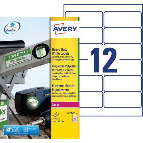 Etichetta autoadesiva ultra resistente bianca - Stampa laser Etichetta autoadesiva ultra resistente bianca - Stampa laser