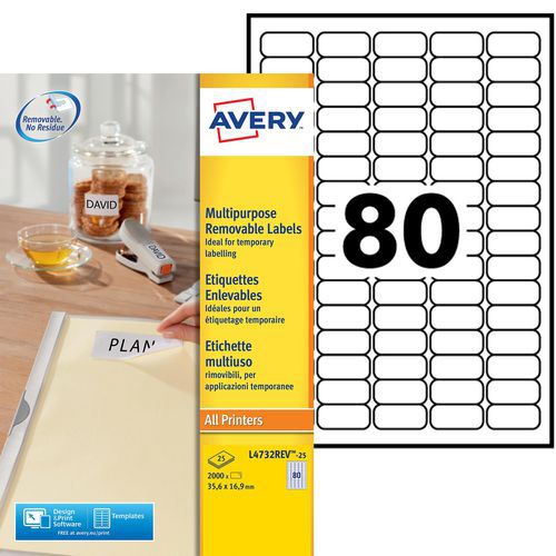 Etichetta bianca riposizionabile Avery, N. di etichette/foglio: 80, N. di etichette: 2000