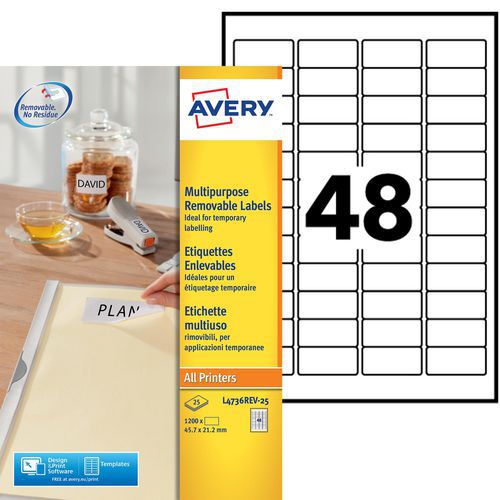 Etichetta bianca riposizionabile Avery, N. di etichette/foglio: 48, N. di etichette: 1200