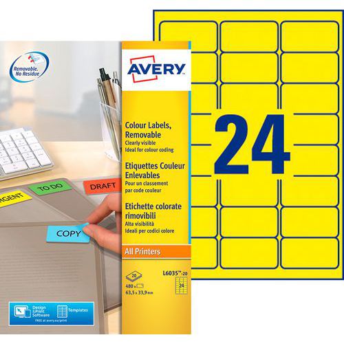 Etichetta colorata riposizionabile Avery, N. di etichette/foglio: 24, N. di etichette: 480 Etichetta colorata riposizionabile Avery, N. di etichette/foglio: 24, N. di etichette: 480