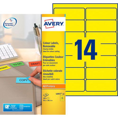 Etichetta colorata riposizionabile Avery, N. di etichette/foglio: 14, N. di etichette: 280 Etichetta colorata riposizionabile Avery, N. di etichette/foglio: 14, N. di etichette: 280