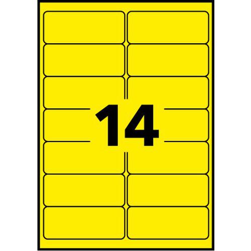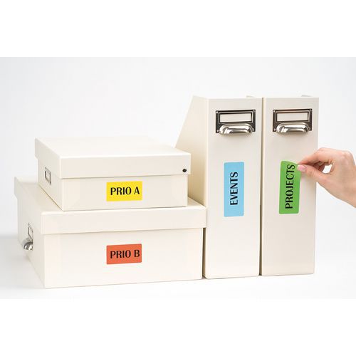 Etichetta colorata pretagliata per un'identificazione chiara e rapida. Sollevabile senza lasciare tracce, aderisce perfettamente anche dopo diversi utilizzi. Compatibile con tutte le stampanti laser, a getto d'inchiostro o fotocopiatrici.