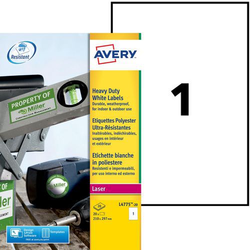 Etichetta in poliestere ultraresistente, N. di etichette/foglio: 1, N. di etichette: 20 Etichetta in poliestere ultraresistente, N. di etichette/foglio: 1, N. di etichette: 20