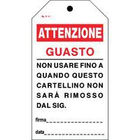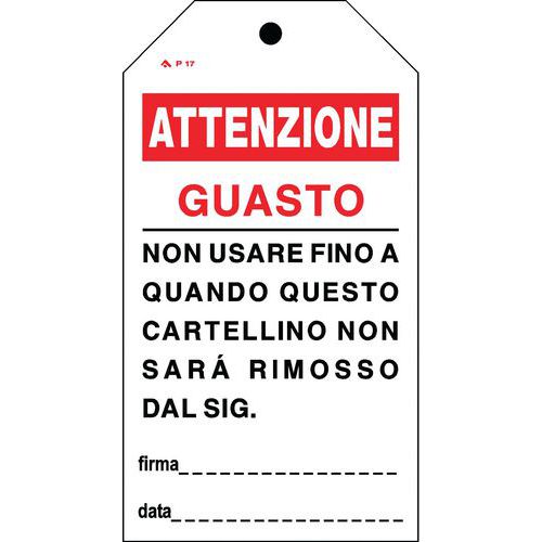 - Cartellini di avvertimento in polistirolo pressato per le procedure di Lockout-Tagout.