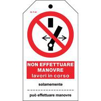 - Cartellini di avvertimento in polistirolo pressato per le procedure di Lockout-Tagout.