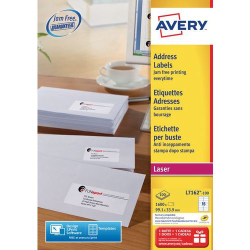 Etichetta facile da scollare per agevolare la spedizione. Stampa con un allineamento perfetto grazie alla tecnologia Ultragrip. Compatibile con tutte le marche di stampanti laser e garantita senza inceppamenti.