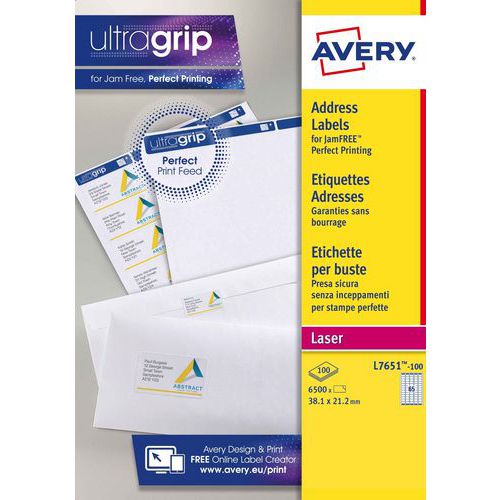 Etichetta per indirizzo Ultragrip, N. di etichette/foglio: 65, N. di etichette: 6500 Etichetta per indirizzo Ultragrip, N. di etichette/foglio: 65, N. di etichette: 6500