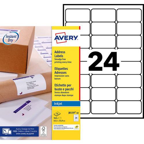 Etichetta standard, N. di etichette/foglio: 24, N. di etichette: 960, Lunghezza Etichetta: 63.5 mm Etichetta standard, N. di etichette/foglio: 24, N. di etichette: 960, Lunghezza Etichetta: 63.5 mm