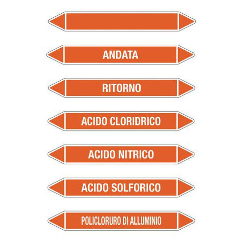- Etichette adesive per tubazioni da applicare in modo visibile vicino ai punti che presentano maggiore pericolo.