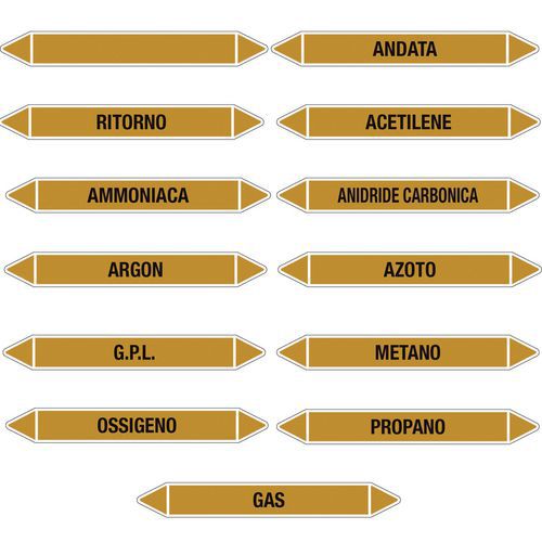 - Etichette adesive per tubazioni da applicare in modo visibile vicino ai punti che presentano maggiore pericolo.