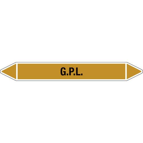 Etichette per tubazioni, Larghezza: 50 mm, Lunghezze: 350 mm, RAL: 1024, Colore: Giallo, Messaggio: GPL