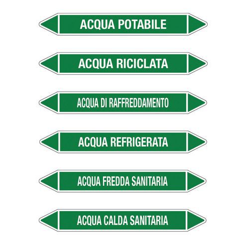 - Etichette adesive per tubazioni da applicare in modo visibile vicino ai punti che presentano maggiore pericolo.