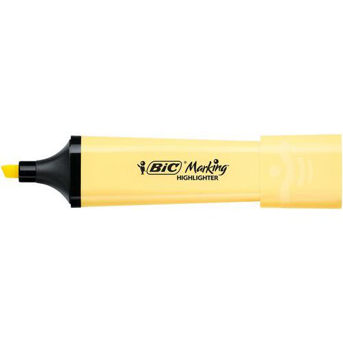 L'evidenziatore BIC Marking Flat è pigmentato con un inchiostro a base d'acqua per portare un tocco di colore e vivacità ai vostri appunti. Il corpo piatto e l'estremità arrotondata sono stati pensati da esperti per assicurare una presa e un controllo più comodi. Punta smussata modulare che consente di sottolineare con tratto fine (1,2 mm) e tratto normale (4,6 mm). Evidenziatori piatti e pratici color pastello che non trapassano la carta. Approfittate dell'inchiostro ad asciugatura rapida e di un corpo piatto e pratico che può essere disposto in verticale, per una scrivania più libera.